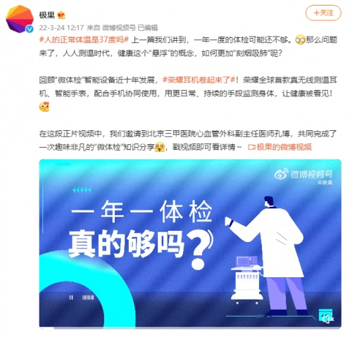 为了让人们对人体体温有更全面、更科学的了解,健康时报和极果网就话题 #人的正常体温是37度吗#进行了科普,并发表了相关长图文和趣味科普视频。