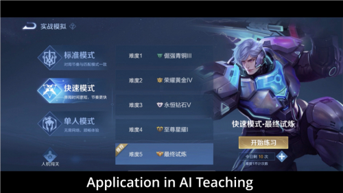 人机协作技术解决了这一问题,成功让王者绝悟实现AI教学。在游戏内“绝悟试炼”玩法中,王者绝悟身兼队友及老师,与玩家在真实对战环境中交流协作,并在过程中向玩家传授职业级的策略与操作技术,帮助玩家迅速熟悉英雄操作与游戏玩法。数据显示,在引入王者绝悟AI教学后,玩家单局游戏主动沟通的次数提高了56%,提高了PVE玩法的可玩性。
