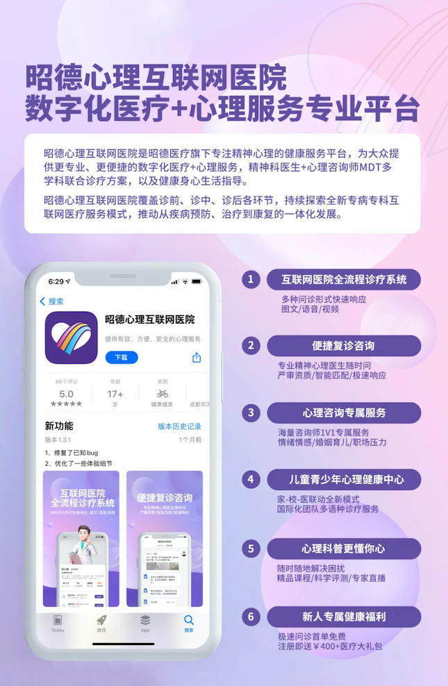 数字化医疗+心理健康『线上下双生态』模式,昭德心理互联网医院重磅上线