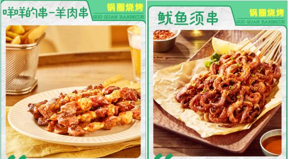 在烧烤菜品方面,消费者在锅圈食汇可以购买到中式烧烤菜品、日韩烧烤菜品。其中包括羊肉串、秘制烤脑花、鹌鹑、秘制翅中串、鱿鱼串、日式肥牛、厚切牛五花、烤玉米等等菜品,可谓应有尽有。
