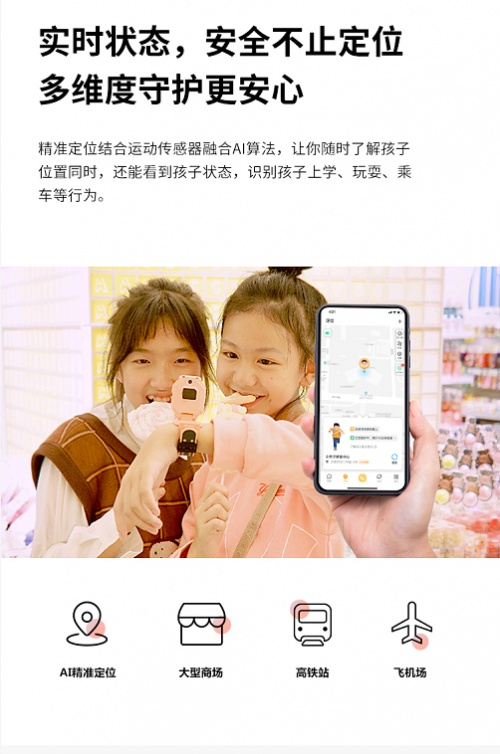 家长们给孩子配电话手表,事实上初衷都是一样的:孩子的安全问题。出门时让孩子戴上,不管家长在哪儿,都希望能从手机APP里看到孩子的定位和行踪。作为儿童手表领域的佼佼者,小天才Z6A儿童电话手表推出了远程精准定位功能,通过传感器融合AI算法,不管是放学去同学家,还是出去玩,都能实时精准定位孩子位置。同时,还能看到孩子状态,识别孩子上学、玩耍、乘车等行为,多维度守护孩子。