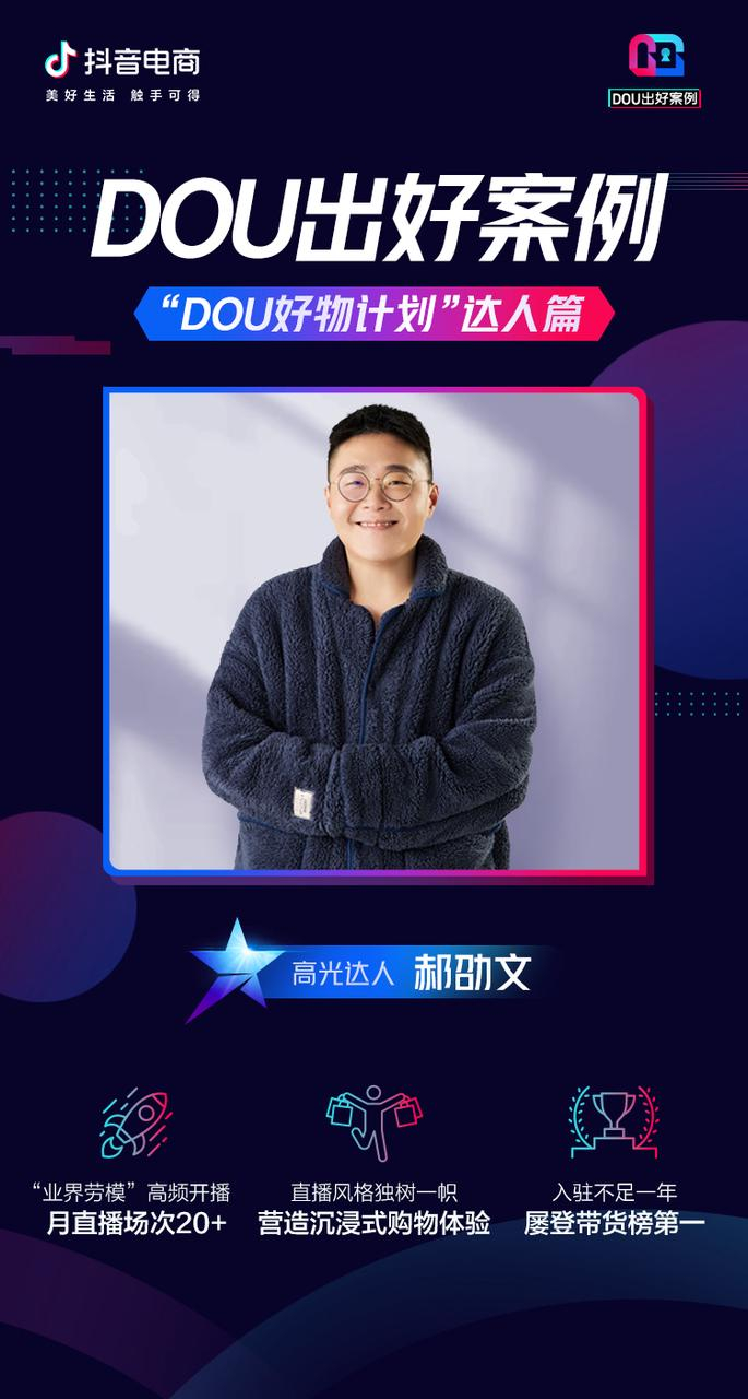 在“DOU好物计划”活动发布后,郝劭文积极参与,将优价好物带给消费者的同时,也为品牌带来了销量、口碑的双重增长。他坦言:在抖音电商,只要坚持,每个人都有成功的机会。