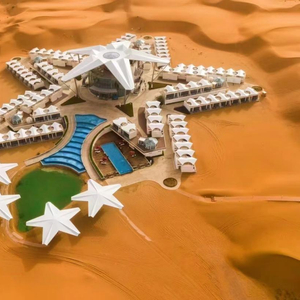 位于腾格里沙漠腹地之中的中旅沙坡头·沙漠星星酒店,是近年高端商旅市场的一颗新星,吸引梵克雅宝等一众国际高端品牌作为商旅活动举办地。
