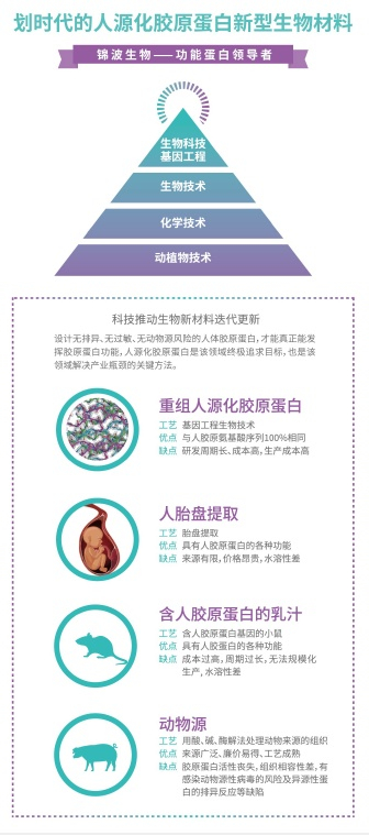 胶原蛋白大家都很熟悉,但是却没有多少人对胶原蛋白的细分市场有详细的认知。现阶段,胶原蛋白经历了从动物组织提取动物源胶原蛋白到现在锦波生物利用基因重组表达出的人源化III型胶原蛋白等数个发展阶段。而研究人员也从原来对胶原蛋白的一知半解到现在锦波生物对III型胶原蛋白DNA序列的全链分析与筛选,让我们用科学重新丈量了胶原蛋白。