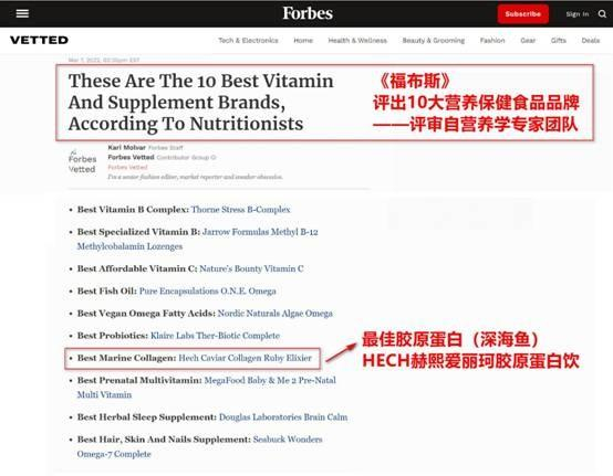 HECH赫熙胶原蛋白饮获评《福布斯》最佳胶原蛋白