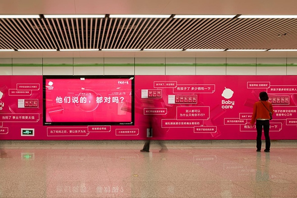 图片说明:Babycare×《中国妇女报》在杭州地铁站发起“开撕”不合理育儿观念活动