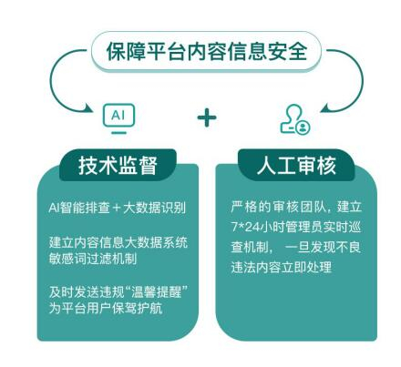 其次,有非常严格的“先审后发”和“三重审核”机制。对于用户发布的内容,首先通过AI智能排查+大数据识别,针对风险内容“人工7×24小时”无间断复审,最后由总编室进行第三道审核。