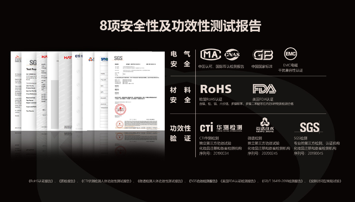 此外,第二代飞莫家用水光仪拥有RoHS、FDA等材料安全报告和GB、CNAS、EMC等电气安全报告,以及多项实用新型专利、外观设计专利、发明专利,使用更安心。