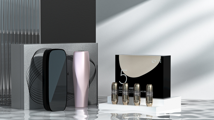 同时,飞莫研发团队更创造性地将NFC智能识别应用于精华,实现护肤模式新突破,一支一码,配合第二代飞莫家用水光仪,无需调档智能识别,一键开机,即可智能匹配合适的护肤模式。