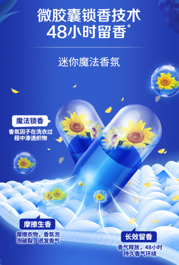 这么美妙的香气不会只是昙花一现,立白御品使用了微胶囊锁香技术,只要你的衣物在摩擦,就会生香,时间维度上长达48个小时,可以说是留香界的高手了。