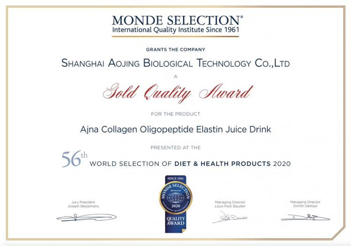 奥敬胶原蛋白饮(第I代)自2018年上市以来,受到众多爱美人士热捧,凭借过硬实力斩获了第56届食品级品质品鉴大会世界金奖(又称国际蒙特奖)和2021年荣格技术创新奖。