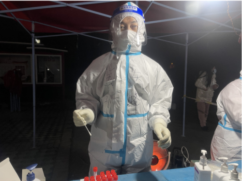 2021年年底,西安疫情期间,孙峰主动请缨参加了医院召集的核酸采样志愿队,在冰雪纷飞、寒风萧瑟的户外,连续数十日与同事前往各个采集点执行任务。