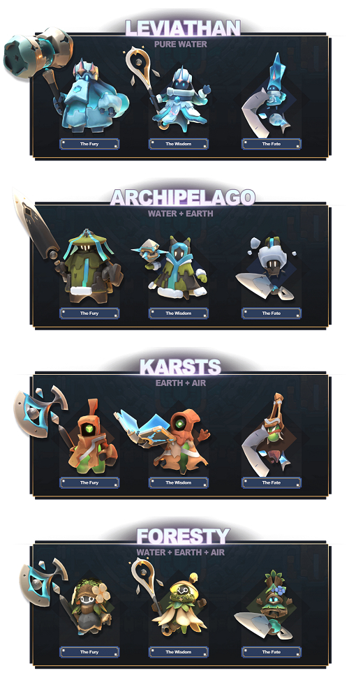 在生命起源活动中,行星核心会根据随机的元素分布、战斗职业等因素,自动演化出独特的守护神外观,共约有37800种独特的外观组合。在后续的原始天合活动中,拥有两个行星的玩家可以“孕育”新的行星。玩家巧妙运用传承特征机制,可以创造出更完美的行星。