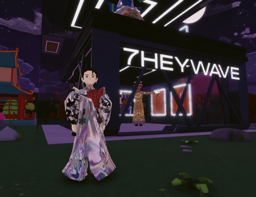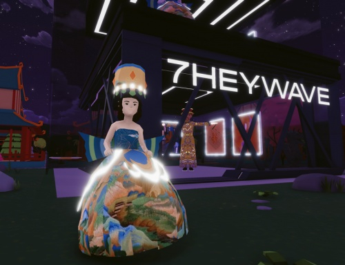 为配合此次元宇宙时装周,7HEYWAVE与故宫观唐合作,让中国传统文化以全新的姿态展示在世界舞台之上:以《千里江山图》为灵感的江山裙,其发光设计呈现出美轮美奂的视觉效果,背后的蝴蝶结不仅寓意永结同心的爱情,也象征着7HEYWAVE在国际元宇宙时尚行业中破茧成蝶;兰亭披风则以《兰亭集序》原稿为基础图案,配以时尚幻彩潮流风格,打造新中式科技美学。在这场虚拟时装盛会中,7HEYWAVE首次联手硅谷科技公司Metaverse AI开发的元宇宙虚拟偶像 Yuki,邀请其作为品牌首席元宇宙体验官(Chief Metaverse Officer)。