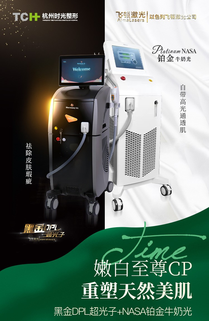 继2021年率先引进以色列飞顿黑金DPL超光子,到今年NASA铂金牛奶光强势入驻,并以“王炸组合”打响嫩肤美白一记响炮,杭州时光始终秉承品质塑美的理念,紧跟科技发展的脚步,不懈地追求美肤技术上的突破,探寻更优质的美丽方案,满足求美者多元化的美肤需求,掀起科技美肤的时尚潮流。