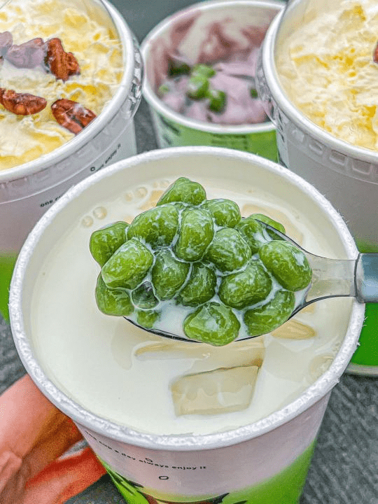龙井风味系列饮品,在选材、口感方面,饮品茶底精选优质龙井,借用了传统炒茶工匠的制茶经验使饮品极大程度地保留住龙井本身具有的清新豆香味,再搭配上软糯的青团,入口异常香甜可口,完美地将龙井香融入到奶茶中;而在杯面设计上,灵感同样来自于江南茶文化,通过茶叶翠绿亮眼的色彩,从视觉上展示饮品清鲜醇爽的特点。