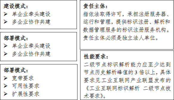 二级节点建设是系统性工程,二级节点除自身运营外,还承担着对接、发展、推广企业节点的作用。因此,本导则也给出了企业节点的建设框架、具体建设内容和相关要求。