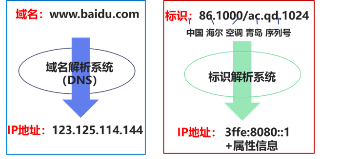 在访问网站(如输入“www.baidu.com”)时,通过域名解析可以获取服务的IP地址,随即连接到该网站入口以获取相关信息。通过标识解析系统同样也可以获取到保存着标识信息的服务器IP地址。