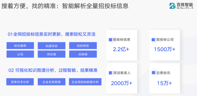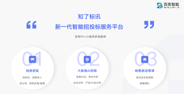 近日,百炼智能旗下智能招投标服务平台——知了标讯宣布正式上线竞对PK和企业关系图谱两大功能,助力企业抢先一步获取商机、洞察趋势,更好地应对复杂的To B营销场景。