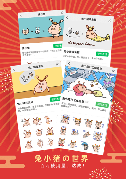 兔小猪最初作为微信表情进入大众视线,其幽默、爱自嘲但又不失勇气的角色设定在广大年轻人群体中引发了集体共鸣。