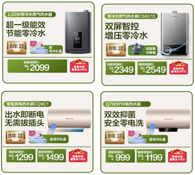 四月家装换新季期间,凡在万和官方商城购买热水器(包括壁挂炉)、厨房电器产品,均可参与“换新补贴”活动!