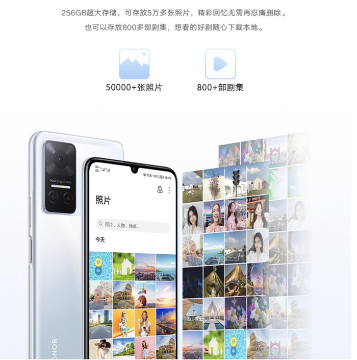 荣耀Play6T拥有256GB超大存储版本,能为用户带来更大的储存空间,可存储5万+照片或800+部高清剧集。目前用手机存储照片、视频以及等影视剧等已成为用户使用刚需,不仅如此,如今越来越多的超级APP成为“内存杀手”,仅微信就可达到几十GB,让用户不得不反复卸下软件和删除影音资料,来缓解手机容量,以保证正常使用。这次荣耀Play6T带来的256GB超大内存,无疑可以帮助用户解决内存不足的焦虑,享受大内存带来的畅快体验。