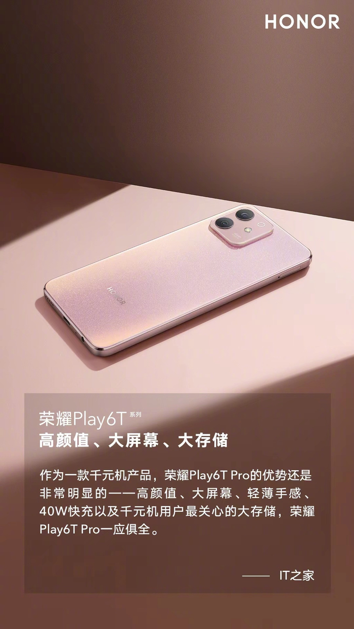 大内存+大电池+大屏幕,荣耀Play6T 8+256GB版本售价1399元