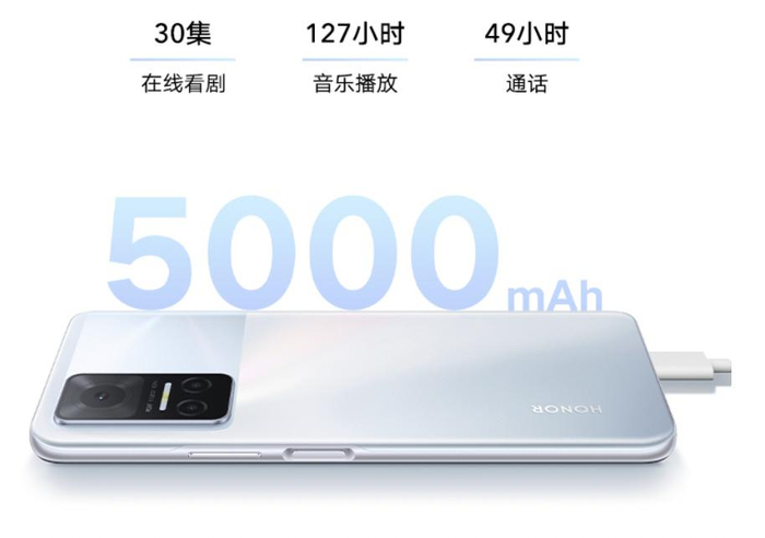 荣耀Play6T配备5000mAh大电池,满电状态下,可在线追剧30集、音乐播放127小时、通话49小时。搭配22.5W快充技术,充电10分钟,就可以追剧3小时,帮助用户告别电量焦虑。结合荣耀智能省电技术,将更大程度的提升手机使用时长,对于轻度用户来说,日常外出可以省去携带充电宝等外接充电设备,摆脱电量束缚,带来更轻便省心的出行体验。