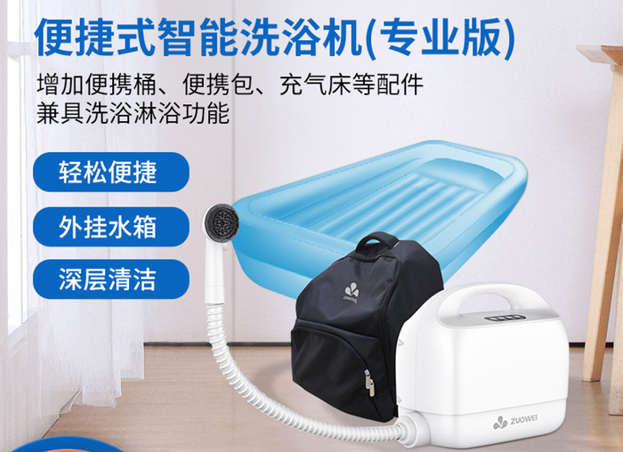 便携式智能洗浴机因为体型小巧玲珑,方便携带,既适用于居家上门助浴服务,同时也可适用于养老机构、护理院以及日间照料中心等等,未来将解决千千万万老人的“洗澡难”问题,使失能老人能够随“浴”而安!