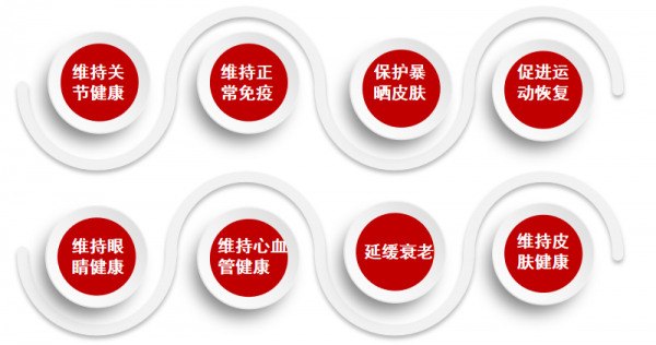 虾青素是一种断链抗氧化剂,具有两个开放的羟基,可以与人体游离的自由基结合形成一个稳定的分子团排出体外。