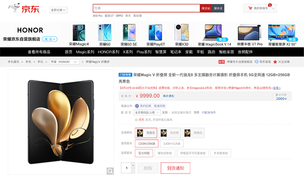 荣耀Magic V折叠屏手机搭载了全新一代骁龙8移动平台,4nm工艺制程5G SoC处理器,搭配荣耀三大引擎OS Turbo X、GPU Turbo X和LINK Turbo X,内外屏皆配备4200万像素前置摄像头。超薄铰链既能实现“无缝折叠”,还能做到“平整展开”,高硬度、耐腐蚀和轻质高强的三重航天级用材,打造出14.3毫米轻薄机身。在各项黑科技的加持下,荣耀Magic V备受用户关注,位列榜单第5位。