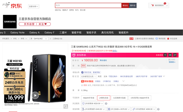 三星W22 5G的机身材质为陶瓷背板,骁龙888处理器,运行内存16G+机身存储512G,IPX8级防水,双卡双待,主屏7.6英寸(直角)/ 外屏6.2英寸(直角),主摄像头1200万像素F1.8广角,后摄2像素1200万像素F2.2超广角,后摄3像素1200像素F2.4长焦镜头。配备专属S pen,双击分屏书写,可在视频同时进行会议记录,商务人士首选,位列榜单第4位。