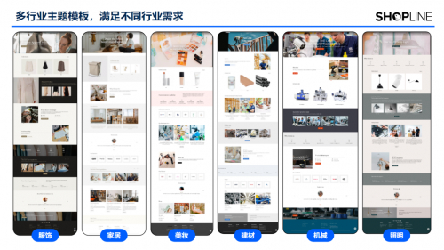 SHOPLINE推出的B2B专属主题模板,涵盖3C、户外、家居、汽配、首饰、女装、箱包、玩具、母婴等多品类,能够满足不同行业的需求。