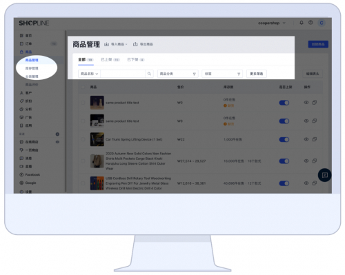 SHOPLINE商品批量管理功能支持卖家Excel批量上传商品,批量上下架商品,也支持一键复制,快速上架同属性商品,大幅提高卖家上架商品的效率。上架后,卖家可以使用商品智能分类管理、商品标签设置、多维度商品检索等功能,让商品有序分类展示,方便客户快速找到自己想要的商品。