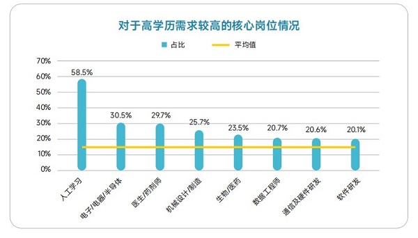 企业渴求高学历人才,一方面可以提高招聘效率,另一方面企业的高质量发展,也需要人才更加专业化。智联招聘平台大数据显示,国企和事业单位在招聘中要求研究生学历的职位占比显著高于其他企业类型。 而企业对于不同学历层级的员工进行人才培养的方向也会不同,例如硕士、博士的高学历人才的培养会更加偏向于专业领域的深究。为了争夺这些高精尖人才,企业也会相应给出颇丰的薪资待遇。