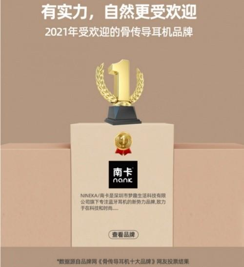 作为一个年轻的国产“新消费”耳机品牌,南卡的品牌成长路上,可以说是一路披荆斩棘才有如今的成就。不仅拥有强大的技术科研视力,独立研发出OT闭合技术3.0防漏音方案、AF全震指向性振子等骨传导行业领先技术;更不忘为人类带来开放式,更健康的聆听方式”的品牌初心,坚持以科技驱动产品升级,深度洞察用户述求,从用户角度出发,坚持技术革新,不断为用户带来更优质、更卓越的骨传导听音设备。旗下的运动耳机更是受到了运动爱好者、数码达人的喜爱,更在2021年《骨传导耳机十大品牌》网络票选中,获得2021年最受欢迎的骨传导耳机品牌。