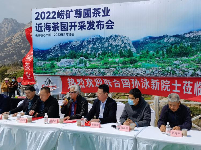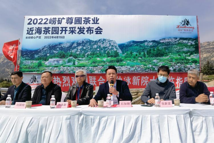 孙泳新院士、张新富博士、刘国刚书记、李培成总经理、刘正迁主任、石总、苏总、赵总等嘉宾共同为本次开茶节剪彩!共同见证2022年崂矿尊圃茶业春茶开采节隆重开幕。