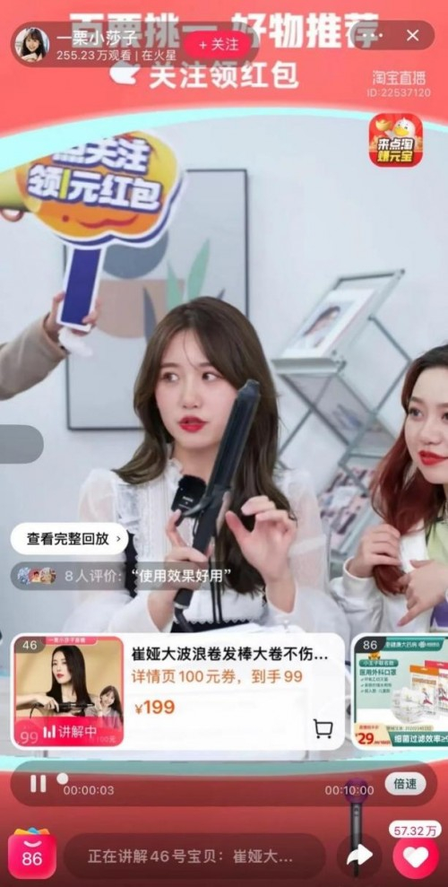 昨日18点,拥有千万粉丝的抖音头部网红“一栗小莎子”开启淘宝直播首秀,场观255W,涨粉5W+。