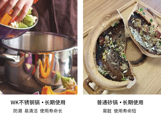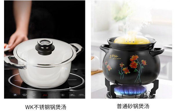 大家都知道砂锅只能在燃气灶上使用,不能用于其它炉具使用,但这款WK不锈钢锅具可适用于多种灶具,大容量满足多种需求,并适用电磁滋炉。平常煲汤最痛苦的是有时候没注意去照看火候,水就会溢出来到处都是,处理起来也是非常的麻烦,而这款WK不锈钢锅却很好的帮您解决了这个问题,无溢出忧患。