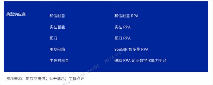 在RPAAI未来发展趋势上,字母点评认为,从技术角度来看,AI与RPA深度融合,拓展RPA的能力边界。随着OCR、NLP、知识图谱等AI技术的成熟,使RPA拥有“大脑”,变得更加智能,可以适用于更加复杂的应用场景。从应用角度来看,RPA将从金融向泛行业加速渗透。随着制造、零售、能源能传统行业转型在即,且传统行业存在更多标准化、重复性的工作,对RPA的需求将大幅增加。