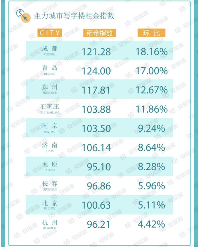 58同城、安居客解读2022年一季度三十城写字楼租赁指数:天津找房活跃度涨幅较高