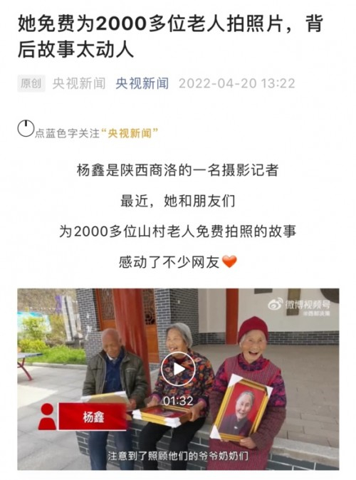 近日,杨鑫给山区老人拍遗照的故事登上了热搜,获得广泛关注,还被央视新闻、新华社等媒体报道。