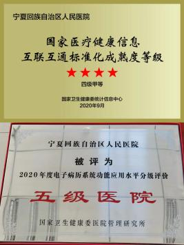 截至目前,宁夏回族自治区人民医院也是宁夏回族自治区内唯一一家同时通过国家医疗健康信息互联互通标准化成熟度测评四级甲等和电子病历系统功能应用水平分级评价五级的医院。