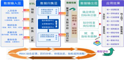 开展信息改革后,医院建立了院-科-诊疗组三级管理体系和院-科-诊疗组-岗位四级考核体系,实行综合绩效和单项绩效相结合,月度绩效和年度绩效相互补,医、护分开独立核算的新机制。2021年,医院设置134项绩效指标,并建立基于数据的绩效考核模型,用数据支撑绩效考核。