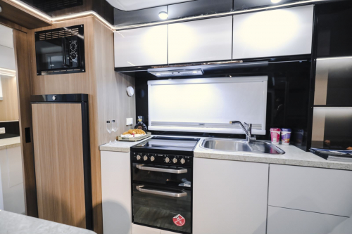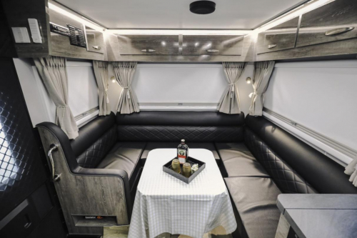 黑系房车外观设计充分融合空气动力学与现代科技美学,将狂野酷炫展现的淋漓尽致。高强度、耐腐蚀外部板材、强大的独立悬挂系统、车身自稳定系统给黑系带来全地形无惧的从容,也是黑系房车车身框架及底盘终身质保承诺的自信展现。