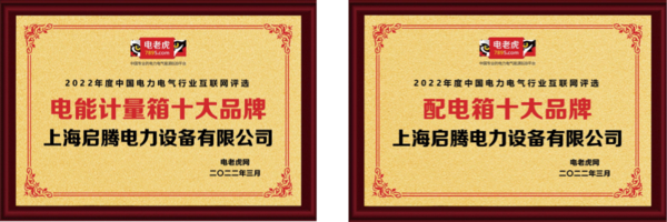 启腾电力荣获2022年中国“配电箱十大品牌”、“电能计量箱十大品牌”