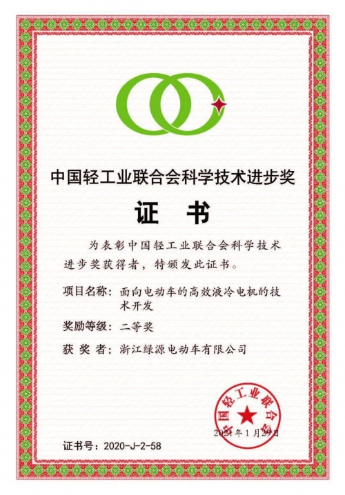 绿源液冷电动车搭载SOC、风冷控制器等技术,6大核心部件质保6-10年,整车持久续航,真正做到了“一部车骑10年”。据悉,高速电机的液冷相关技术专利已多达8项,并于2021年荣获中国轻工业联合会科技进步二等奖。