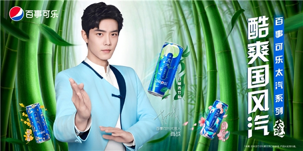 百事可乐邀请当红的青年演员肖战成为品牌代言人后,在新品白柚青竹味可乐的主题国风短片中,肖战以茂林修竹中的谦谦公子形象酷爽登场,融合酷炫视觉特效演绎气势磅礴的东方意境,在青翠竹林之间带领消费者感受竹清香、柚清新、可乐爽。