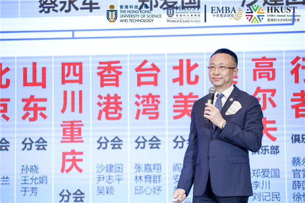 同时在到场嘉宾校友的祝贺下和线上港科大老师、校友的关注下,香港科技大学EMBA第五届校友会主席曹志伟向新一届主席团成员(常务副主席熊伟国、郑璐莎,副主席饶翔、蔡永军、郑爱国、沙建囦,秘书长徐欣力)和19个分会(俱乐部)会长颁发任职牌并介绍校友会下半年工作及计划。