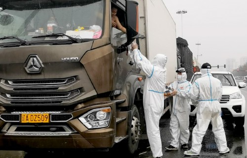 解放泰州路达服务站的工作人员,先后到泰州医药城卡口、泰州主城区高速出口,为在隔离区内滞留和车门贴封条的卡友送去生活物资。除此以外,解放专家一路上还为卡友免费体检,现场解答和指导车辆维修等相关问题。